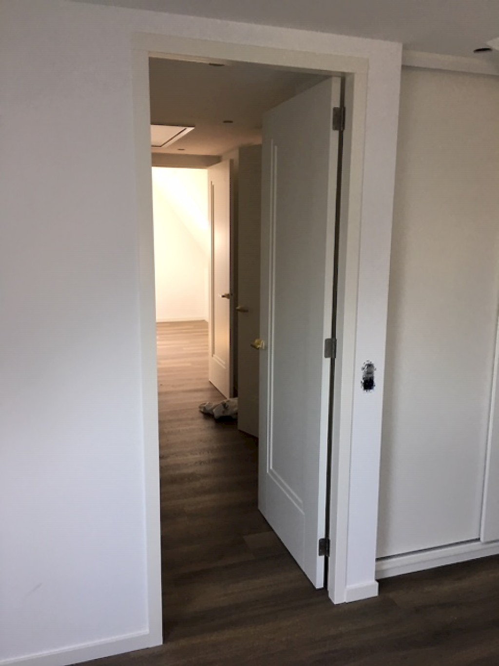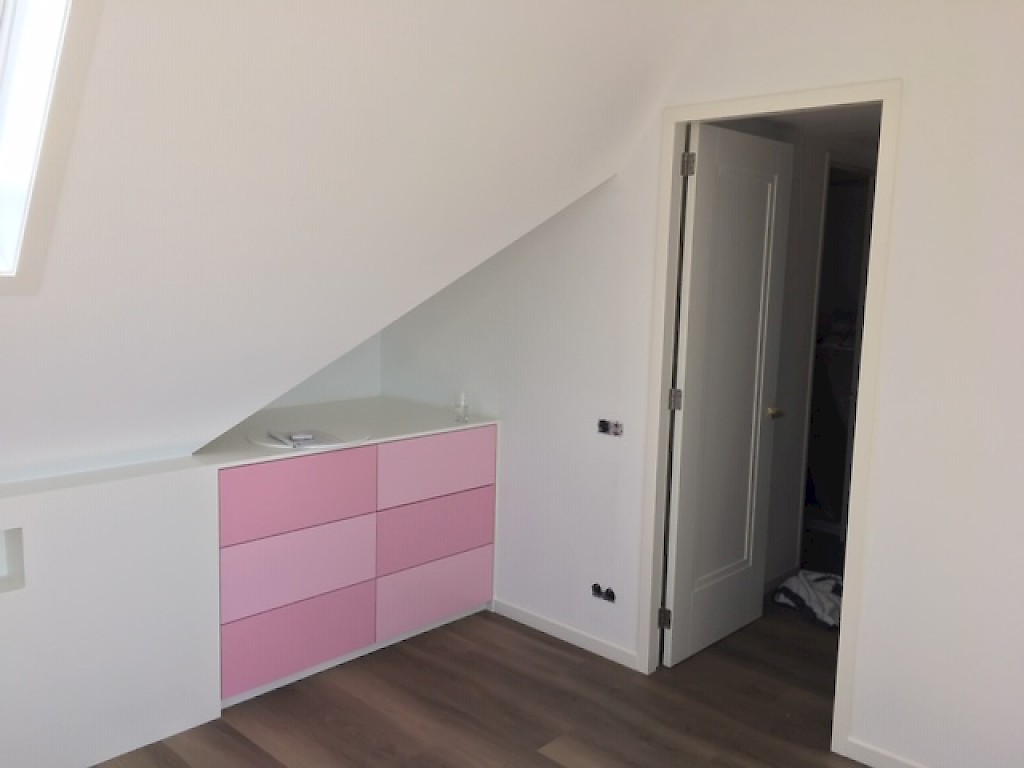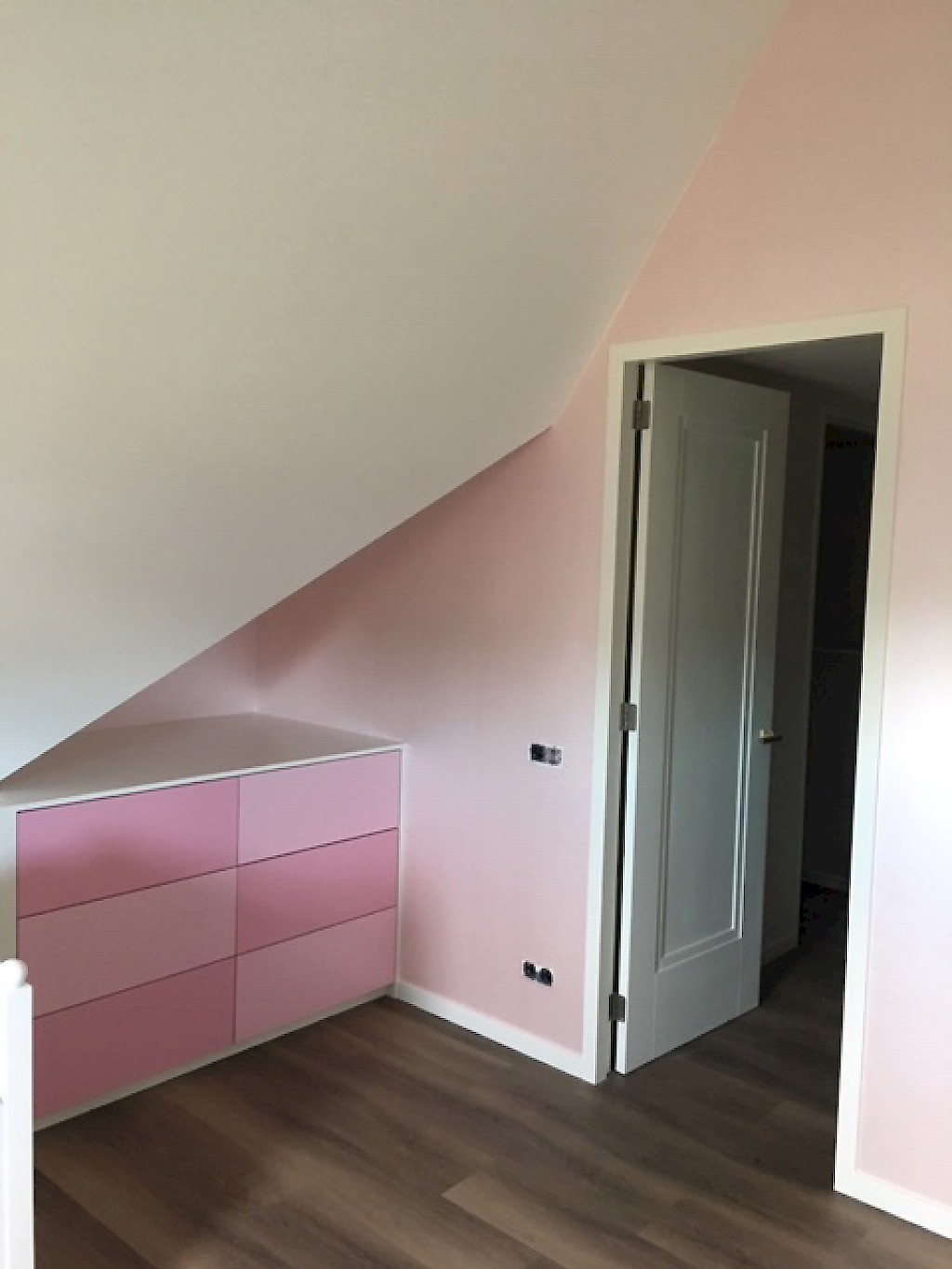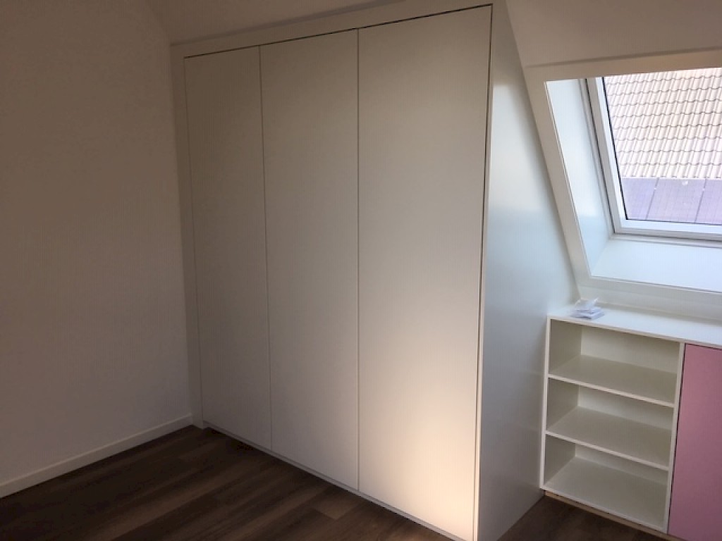 De mdf inbouwkasten zijn bewerkt met een hechtprimer voor een goede hechting en vloeiing van het schilderwerk.