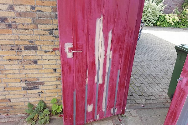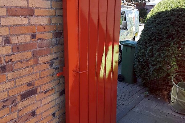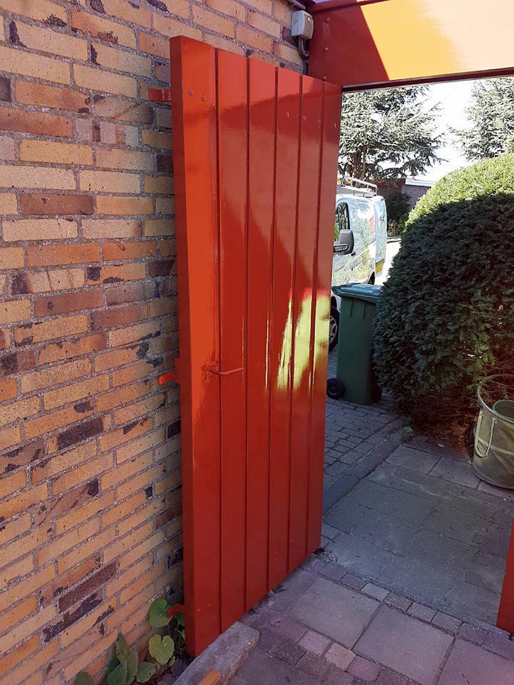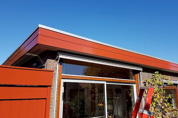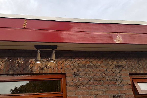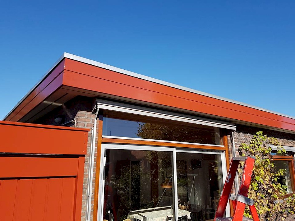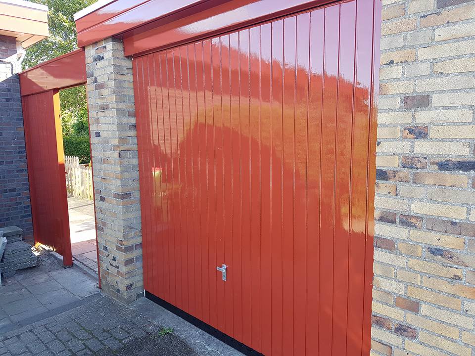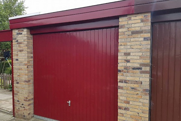 Schilderwerk uitgevoerd aan boeilijsten, garagedeur en poort.