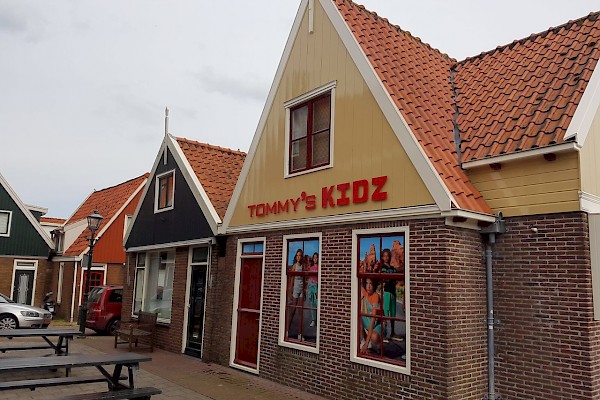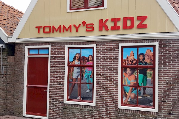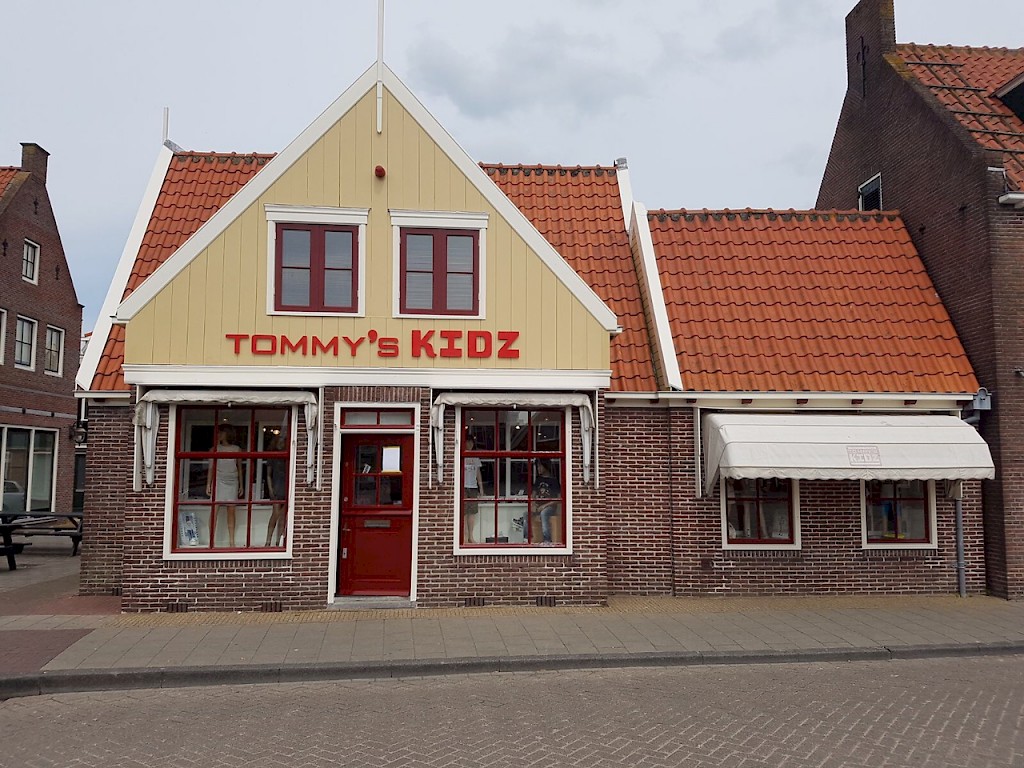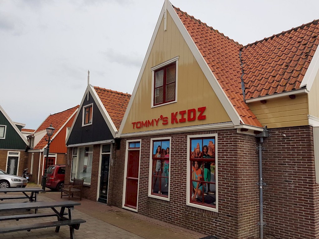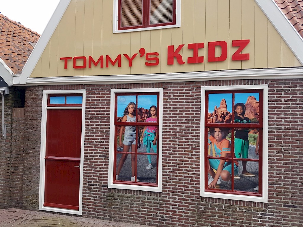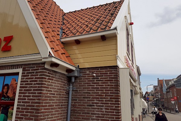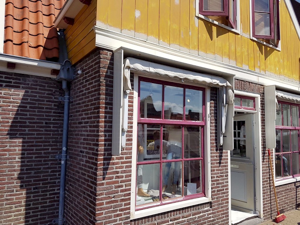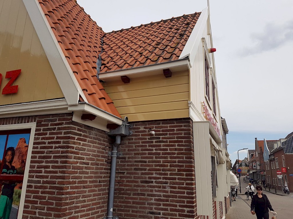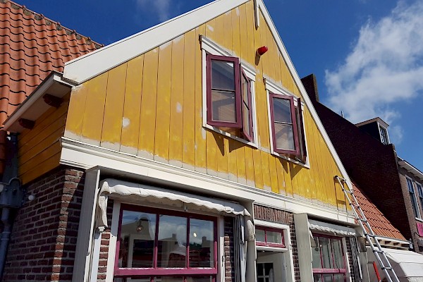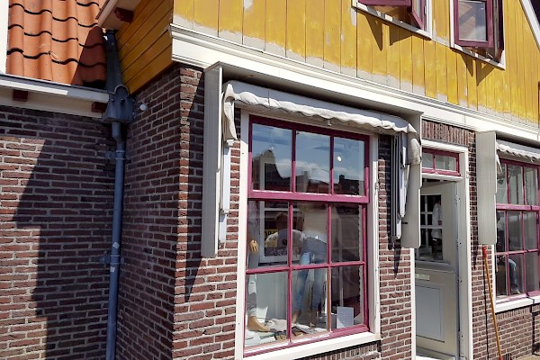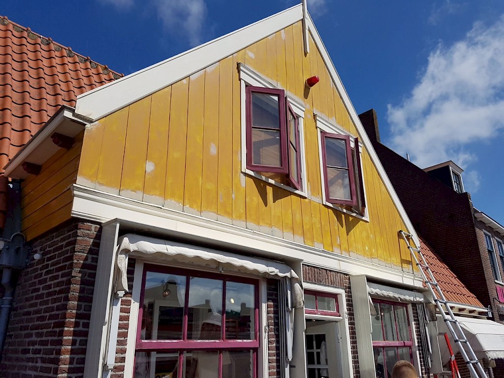 Schilderwerk aan buitengevel van winkel in centrum Volendam.